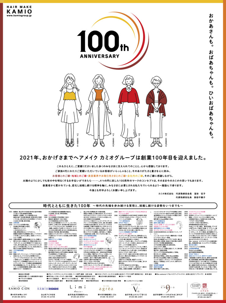 ヘアメイクKAMIO」100周年新聞15段広告VAL DESIGNGROUP。
