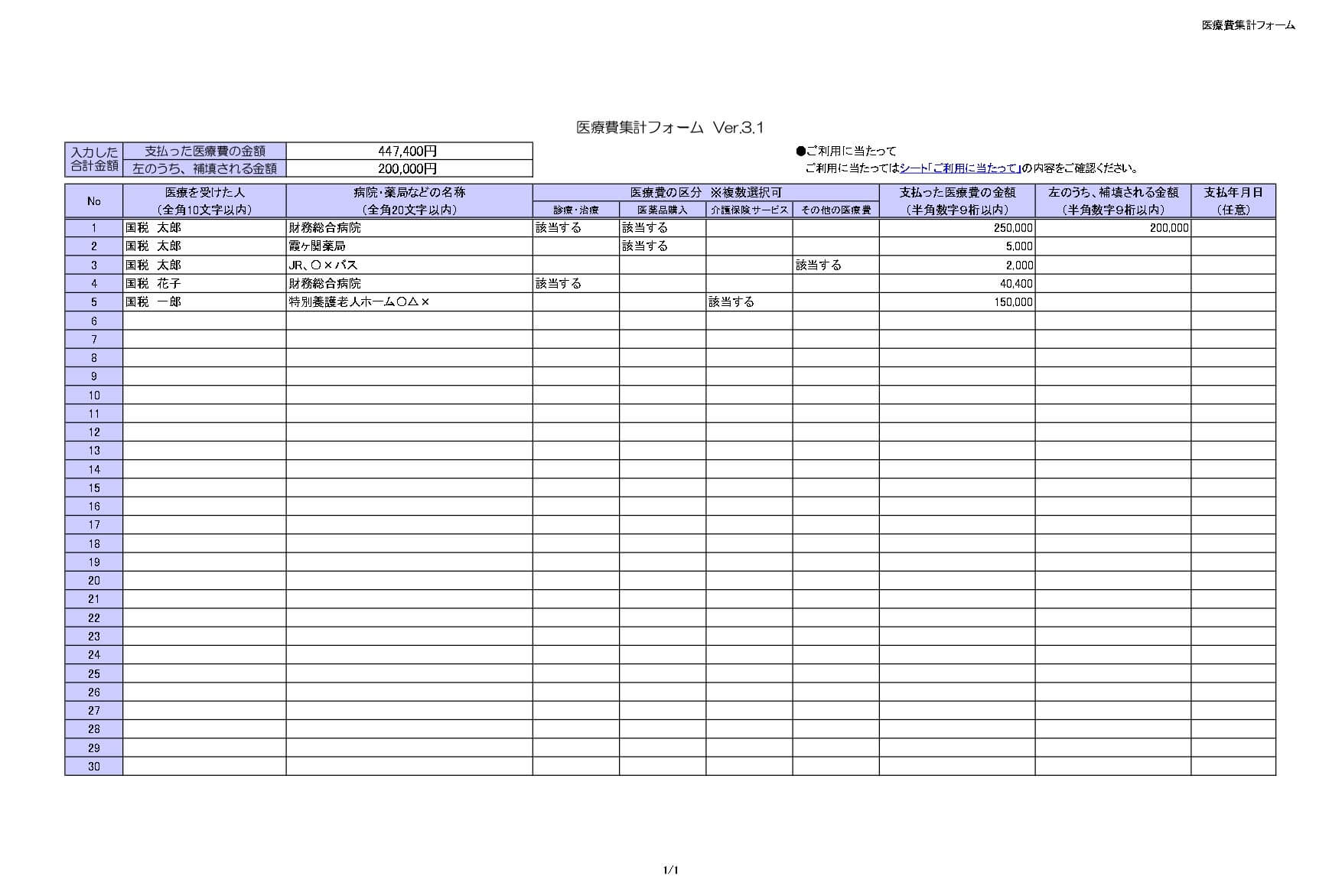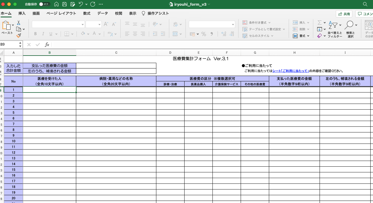 医療費集計シート - 無料テンプレート公開中 - 楽しもう Office。