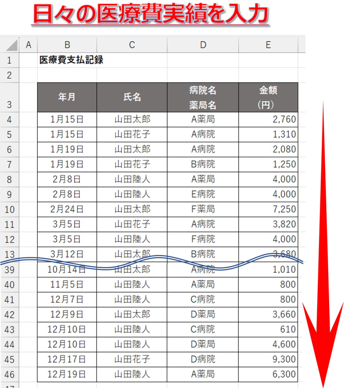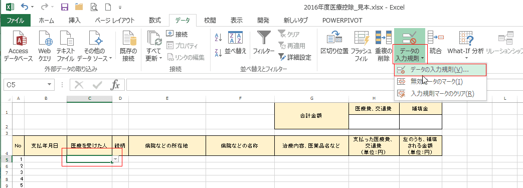 医療費控除のデータを手早く入力するためのシートを作成する:エクセル2013基本講座。