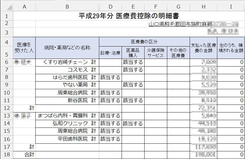 FPが医療費控除明細書 集計フォーム を作成します 確定申告の医療費集計フォーム EXCELファイル 作成を代行ココナラ。