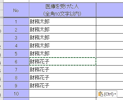 確定申告書等作成コーナー -入力したデータをコピーする方法 医療費集計フォーム。