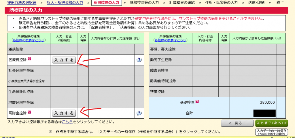 確定申告書等作成コーナー -入力方法の選択 医療費控除。
