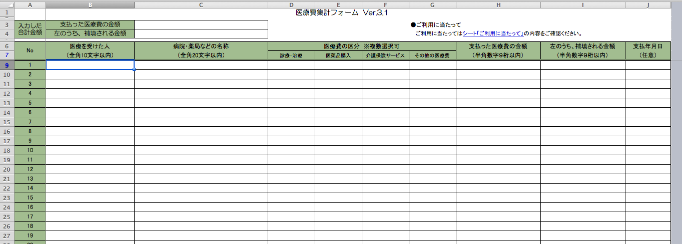 確定申告 医療費集計表エクセルの無料ダウンロード - 新作 無料ダウンロード エクセルのテンプレート。
