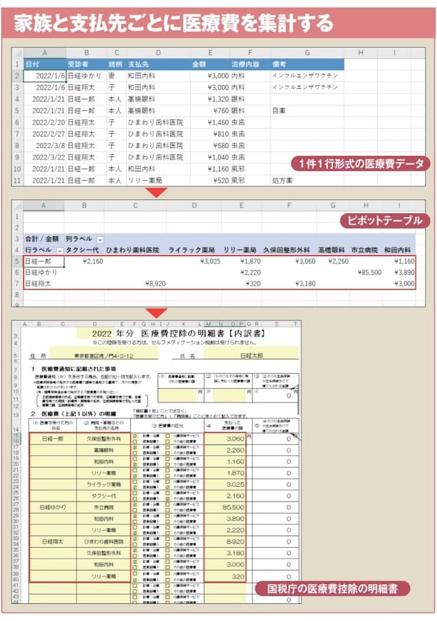 Excelのピボットテーブル、医療費控除の明細書も簡単NIKKEIリスキリング。