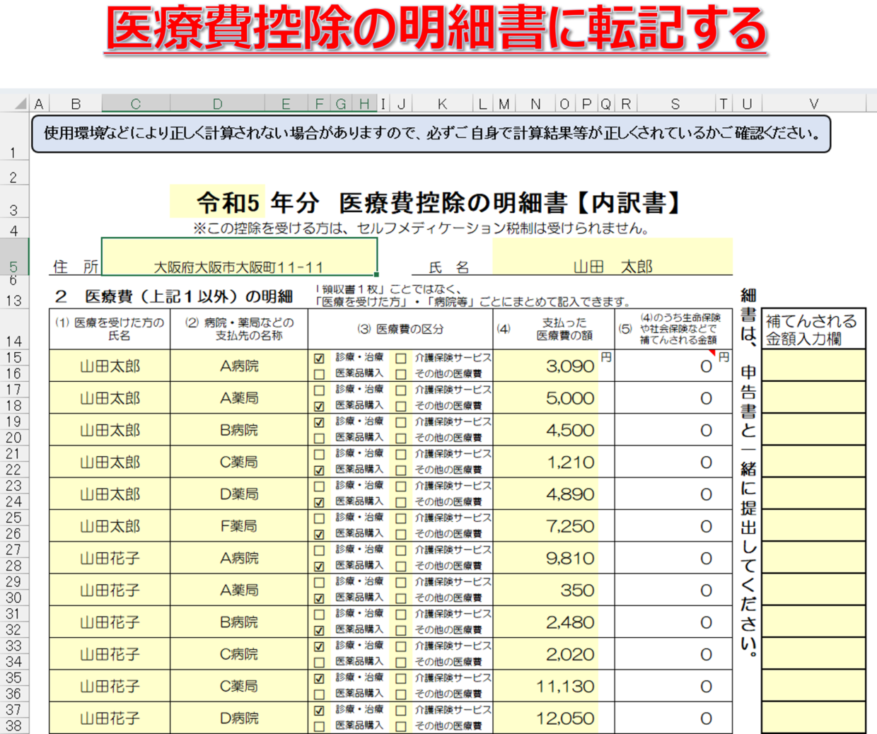 エクセルを使って医療費控除の明細書を自作する方法を徹底解説。