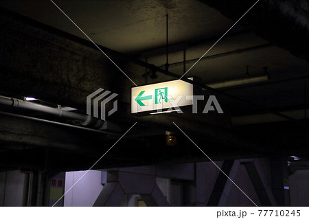 薄暗い立体駐車場の避難誘導標識の写真素材77710244- PIXTA。