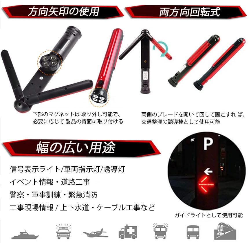 誘導棒 誘導灯 合図灯 4本セット 矢印ライト USB充電式 点灯 点滅 3点灯モード 交通整理 駐車場 軽量 赤色灯 取り外し可能マグネット付き 警。