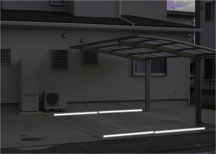 駐車場路面にソーラーLEDライトを埋設 誘導灯として 基本取付工事代。