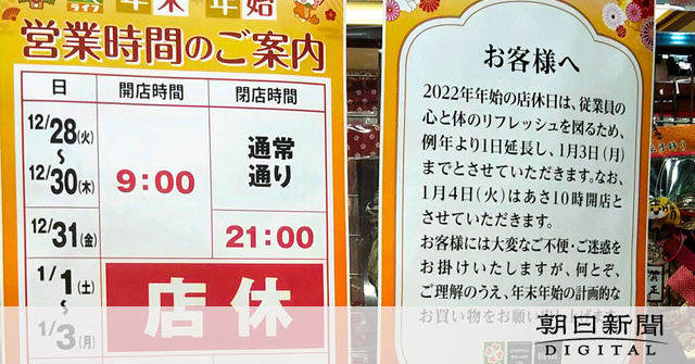 スーパー、正月休みます コロナ禍きっかけに広がる働き方改革:朝日新聞。