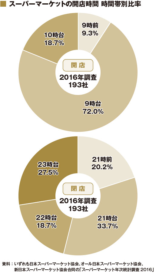 営業時間・開店時間・閉店時間数字で見るスーパーマーケット統計・データで見るスーパーマーケット。