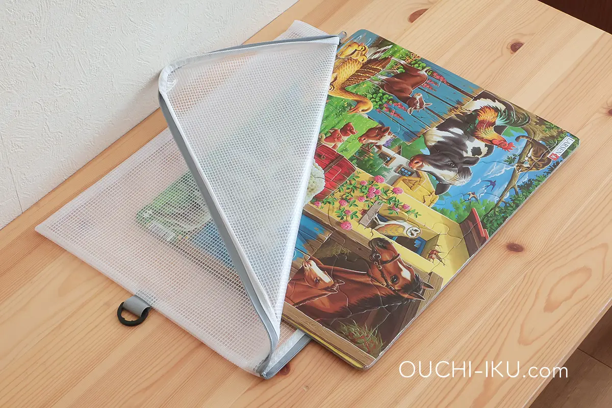 パズル収納は100均のL型ファスナーケース!3歳でも簡単片付けカラボにぴったり目指せフレンチシック・オシャレな家づくり。