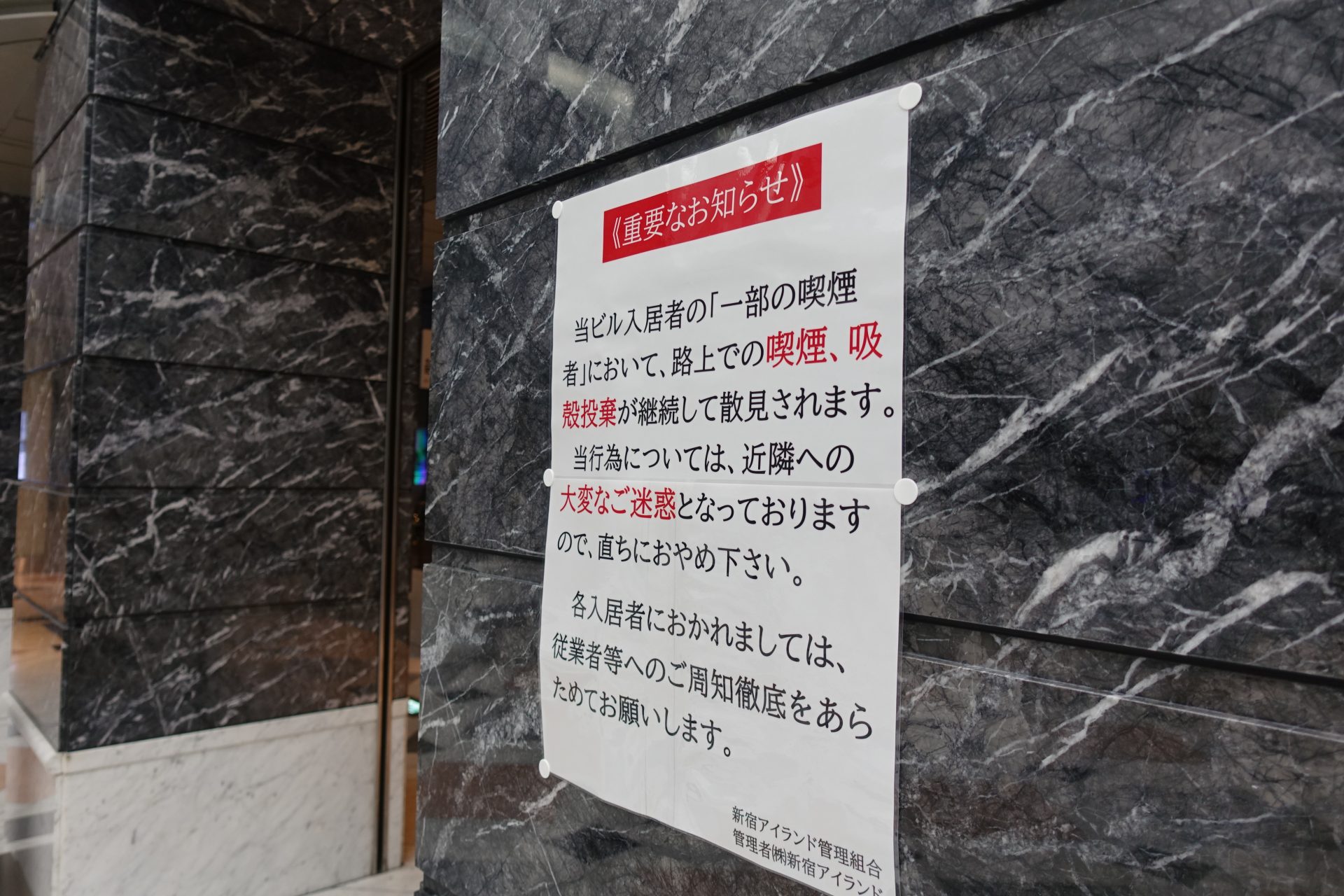 西口喫煙所・リニューアルのお知らせ:新宿区。