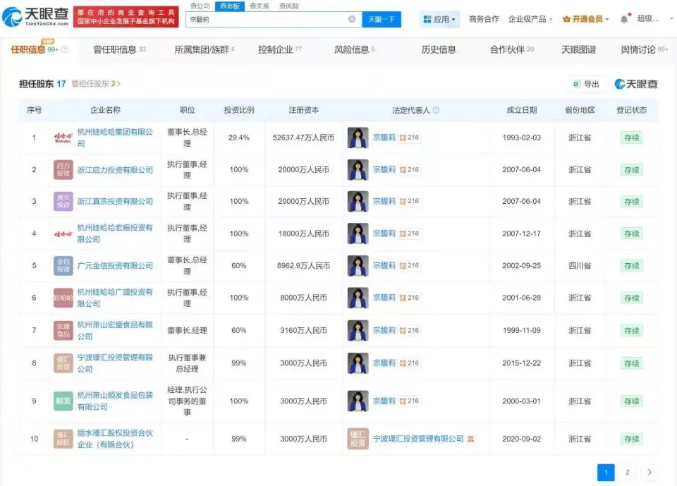 重磅!宗馥莉辞去娃哈哈集团董事长等职务,此前宏胜系公司已准备用新品牌“娃小宗”每日经济新闻。