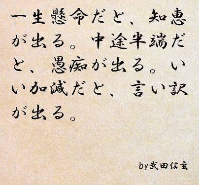 ある武将の言葉 一生懸命だと知恵が出る 中途半端だと愚痴が出る いい加減だと言い訳ばかり あなたは 大丈夫でしょうか?武将武田信玄戦国時代名言あなた知恵愚痴言い訳。