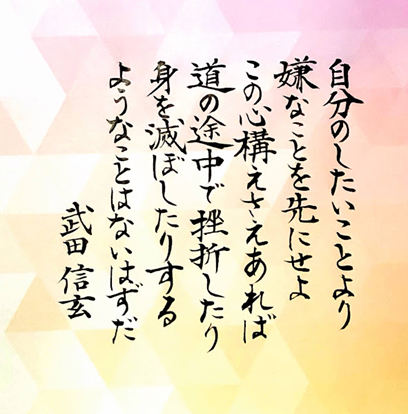 武田信玄の名言「自分のしたいことより嫌なことを先にせよ」。