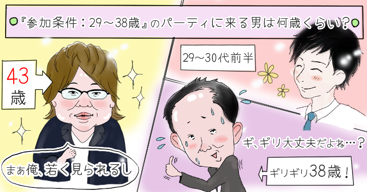 問題です。参加年齢男29~38歳ぐらいの婚活パーティーに参加しているのは何歳?婚活サイトチェキ。