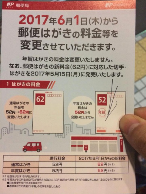 ハガキ62円×140枚 はがきの切手代が値上げする!郵送する際。