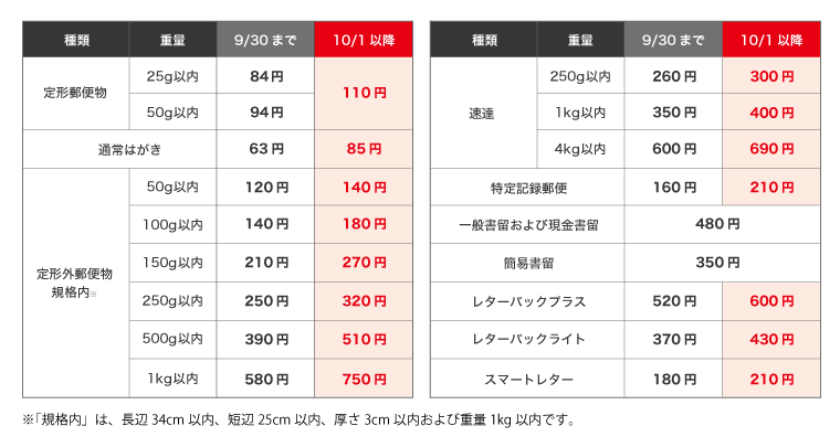 2024年10月1日 火 から郵便料金が変わりました。 - 日本郵便。