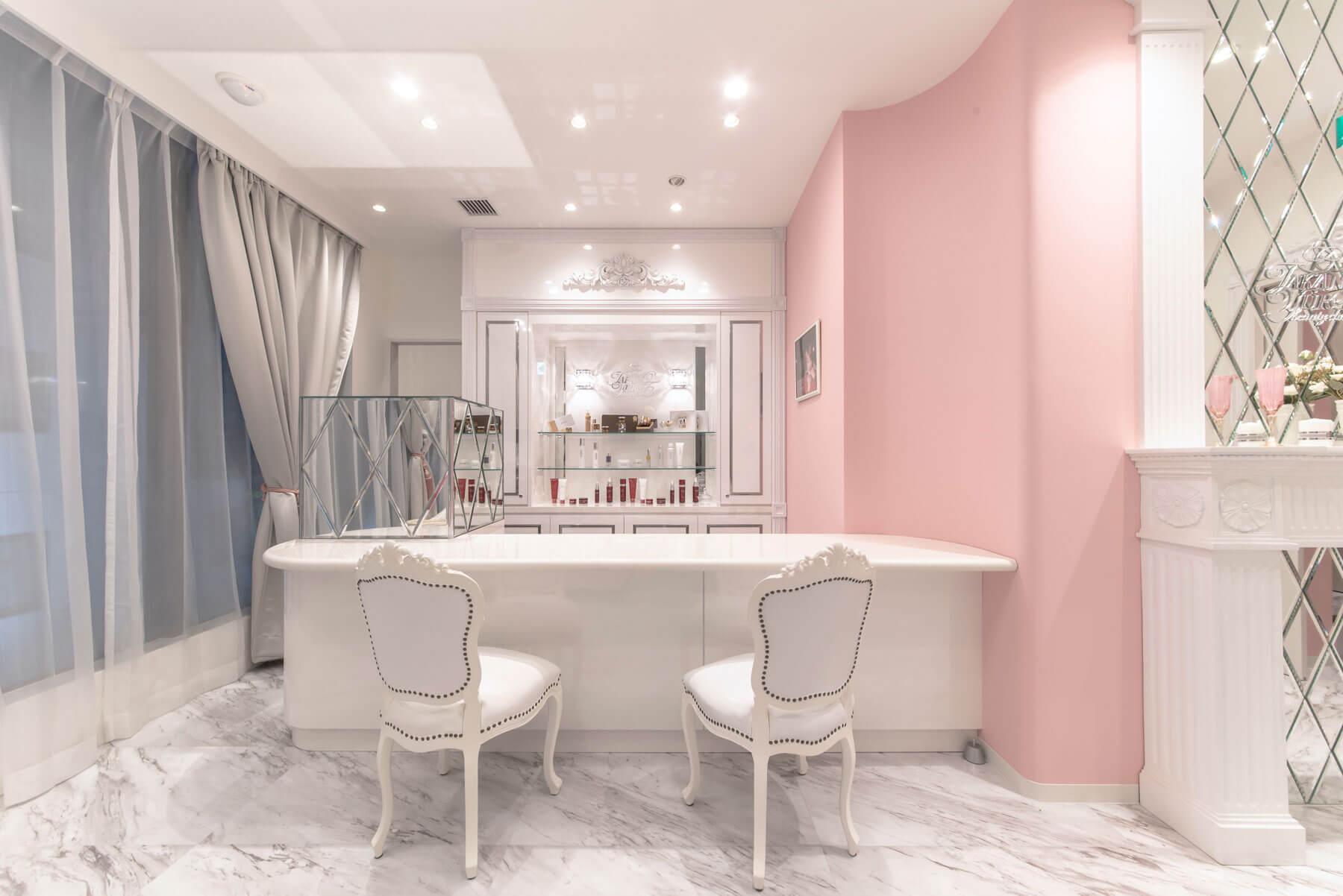 店舗デザイン 上品さと可愛さを兼ね揃えた美容クリニックルミナスビューティークリニックカエル・デザイン・プロジェクト。