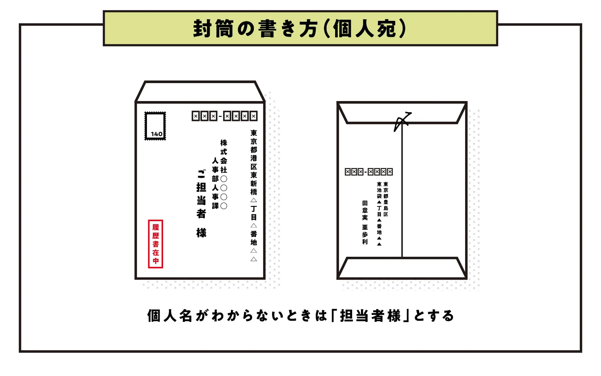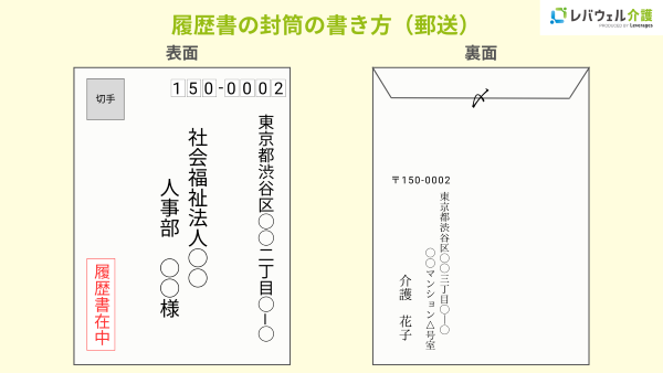 履歴書を入れる封筒の宛名の書き方手渡し・郵送の場合別に解説無料 スマホで履歴書・職務経歴書作成テンプレートからWeb作成ミライトーチResume。
