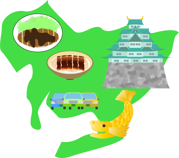 愛知の無料イラスト - 名産・名物の地域の地図素材 - チコデザ。