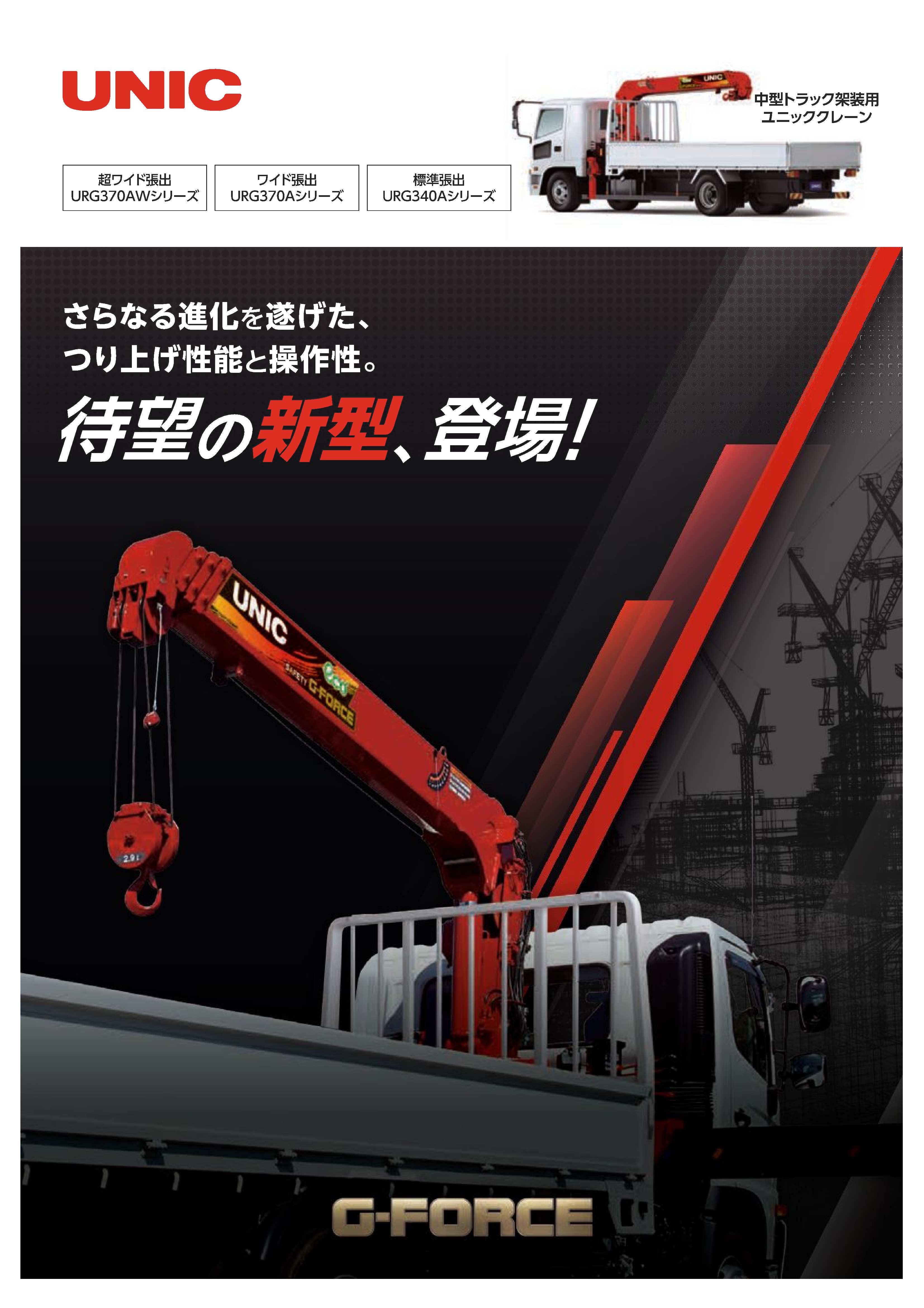 中型トラック搭載型クレーン 新型G-FORCE 発売ユニック中四国販売株式会社。