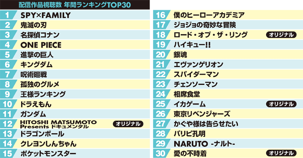 2022年の定額制動画配信 上位アニメ独占、実写で健闘したのは :日経クロストレンド。