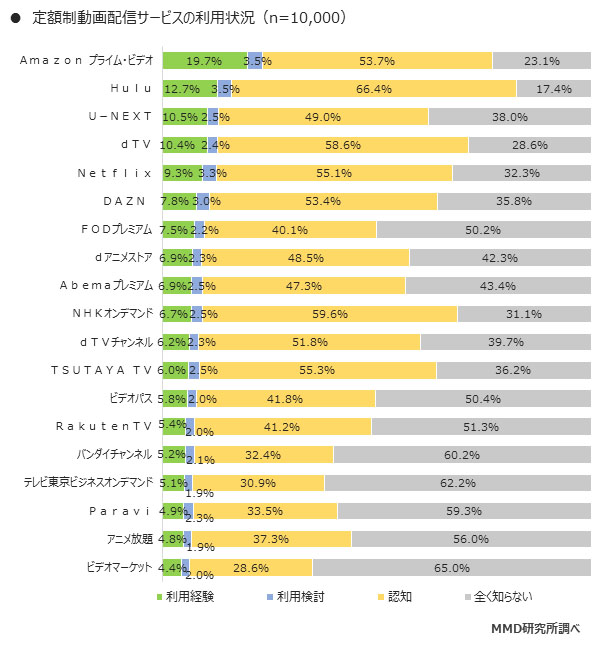定額制動画配信サービスを2人に1人が利用中、人気はAmazonプライム・ビデオ、Netflix、U-NEXT Appliv TOPICS調べナイル株式会社のプレスリリース。