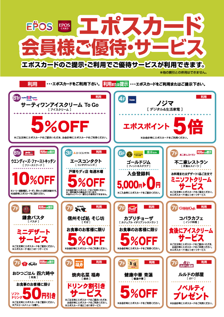 エポスカードのご優待はオトクがいっぱい!IMAエポスカードセンターショップブログ光が丘IMA。