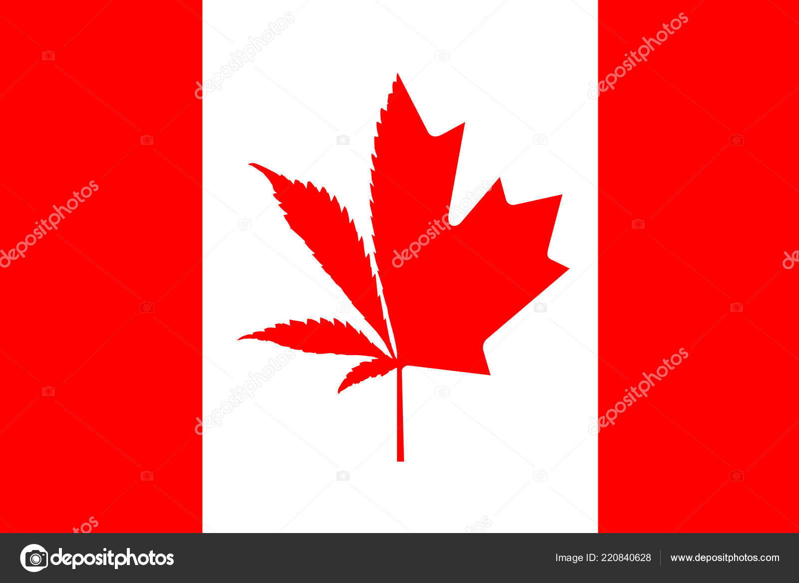 カエデの葉がマリファナの葉に置き換えられたカナダの国旗。カナダでの大麻合法化。写真素材1032545824Shutterstock。