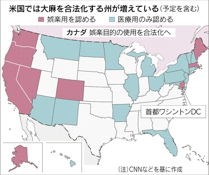 北米、大麻合法化の波 娯楽用、9州・地域で容認 税収増え乱用防止策も - 日本経済新聞。