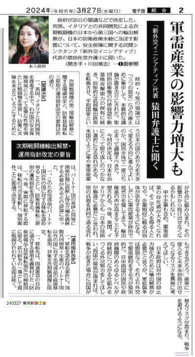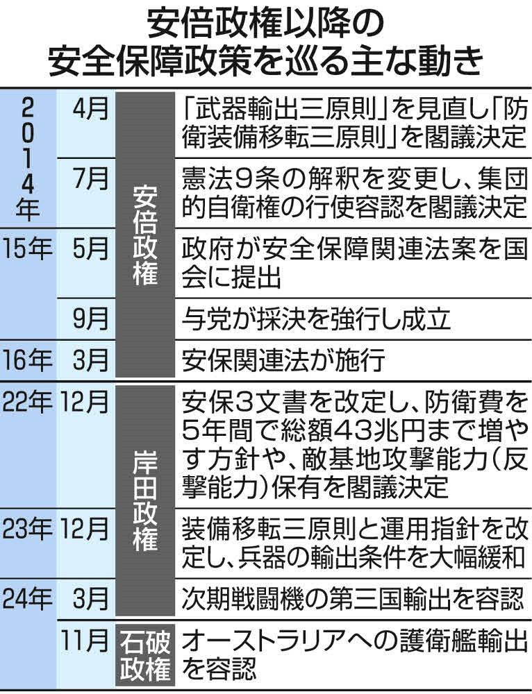 日本の平和主義は一体どこへ? 安全保障関連法施行から9年 殺傷兵器の共同開発や輸出に歯止めがかからない:東京新聞デジタル。
