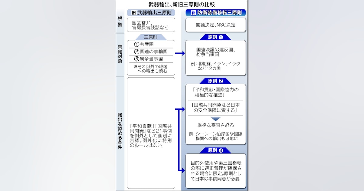 武器輸出、抜本緩和へ 新三原則、政府が決定 友好国と協力拡大 - 日本経済新聞。