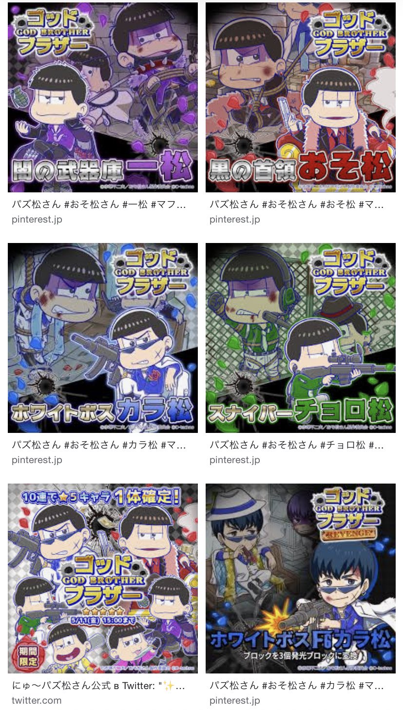 めみまつ on X: "追記!パズ松 サービス終了済 にもありました。「ゴッドブラザー」はゴッドファーザーをもじったと思われるため、これはマフィア。ここではどんなポジションかという設定まではあるようです。2018年なので白まで出揃ったあとですね。これも銭松と。