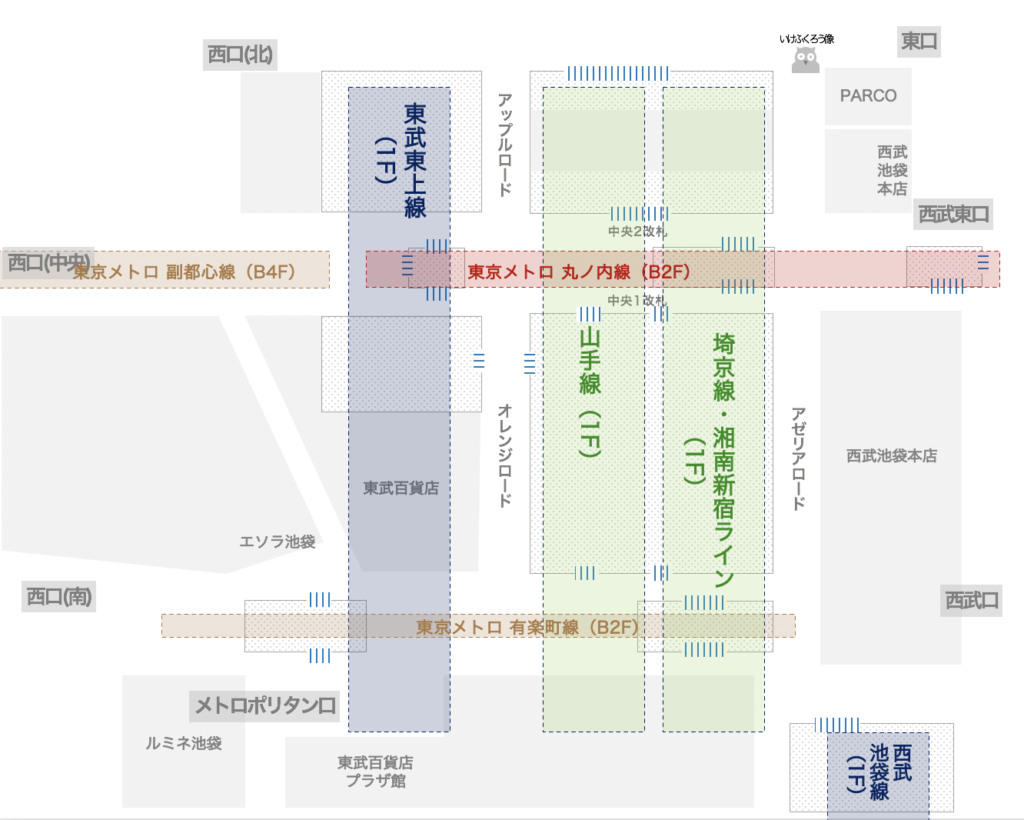 池袋駅構内図迷宮池袋駅を攻略 - 東京生活.com。
