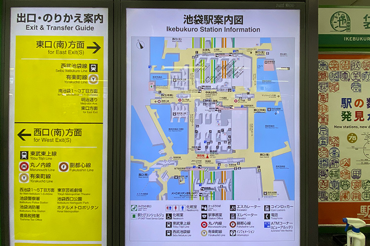 JR 池袋駅 案内板 改札 出口 地下鉄 東武東上線 東京メトロ 看板。