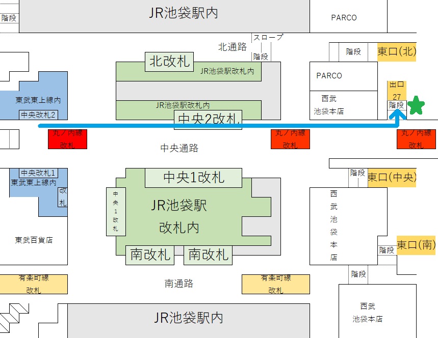 池袋駅東武東上線から山手線・丸ノ内線への乗り換え方法池袋デート.com。