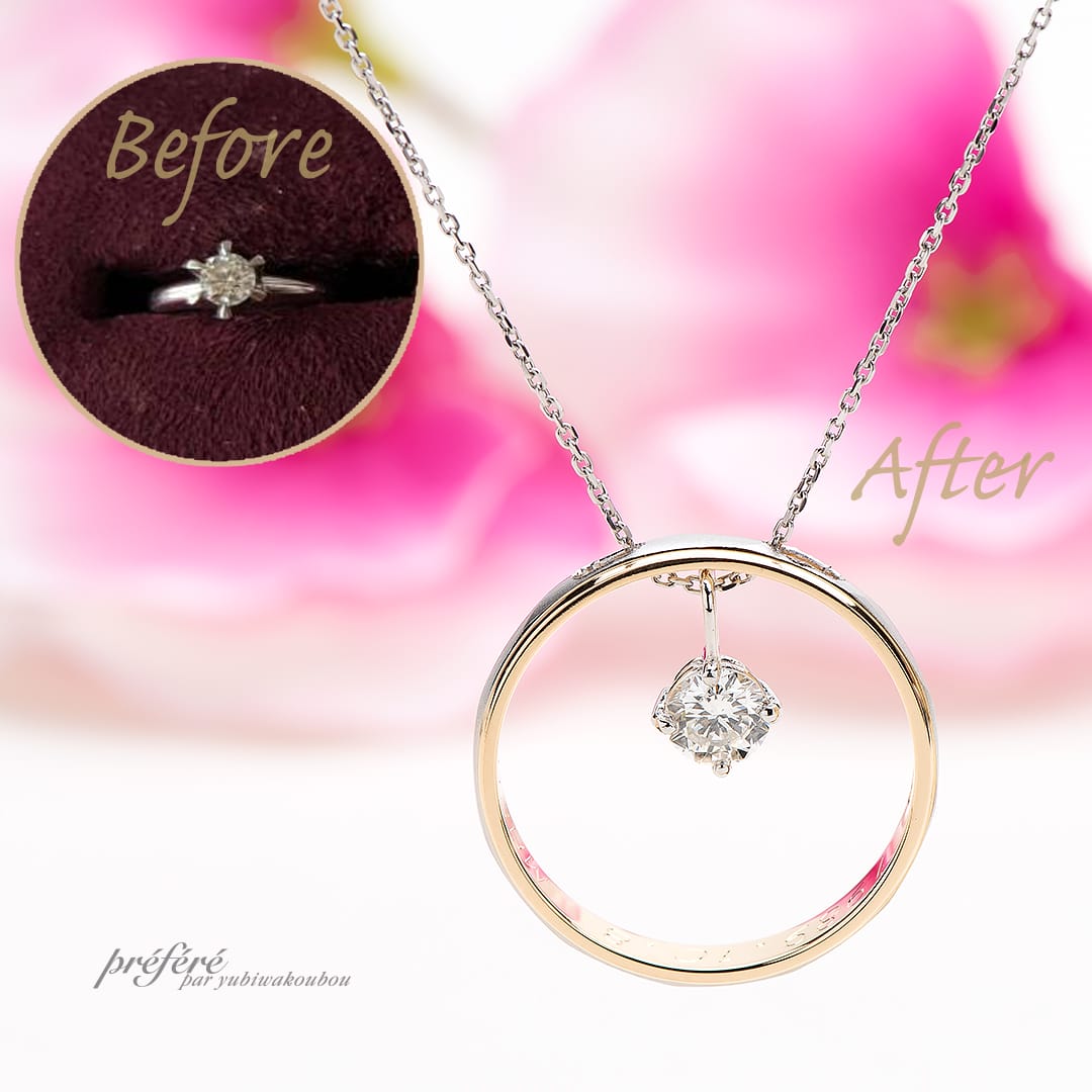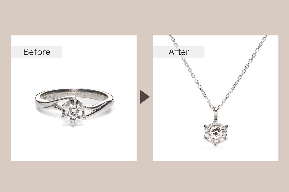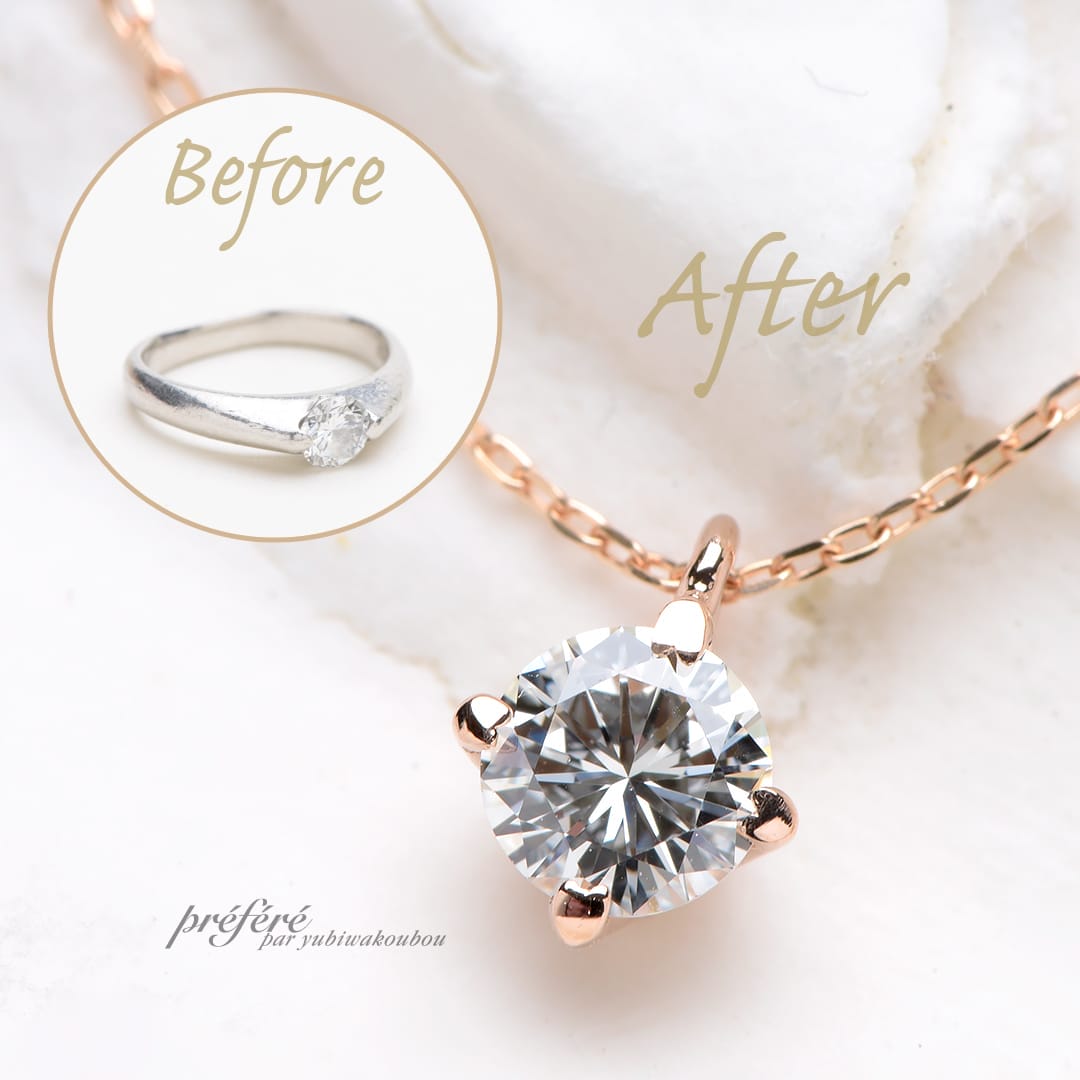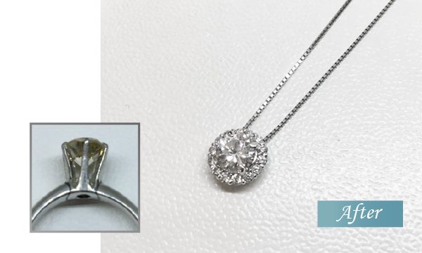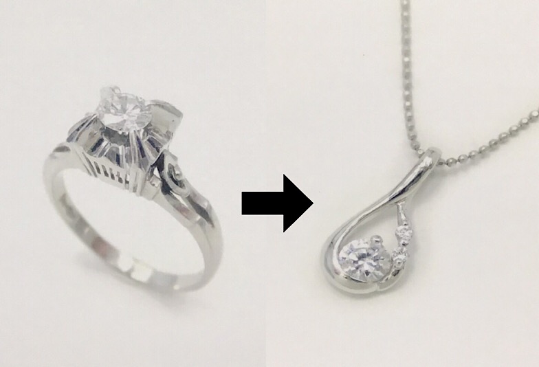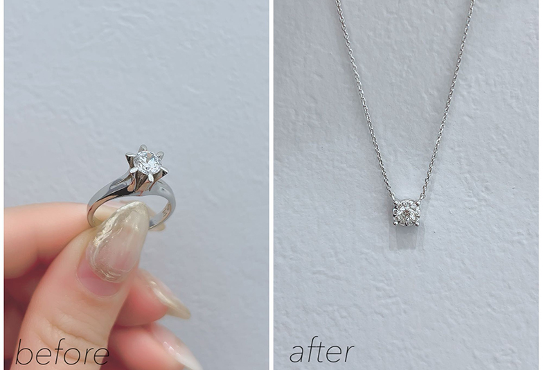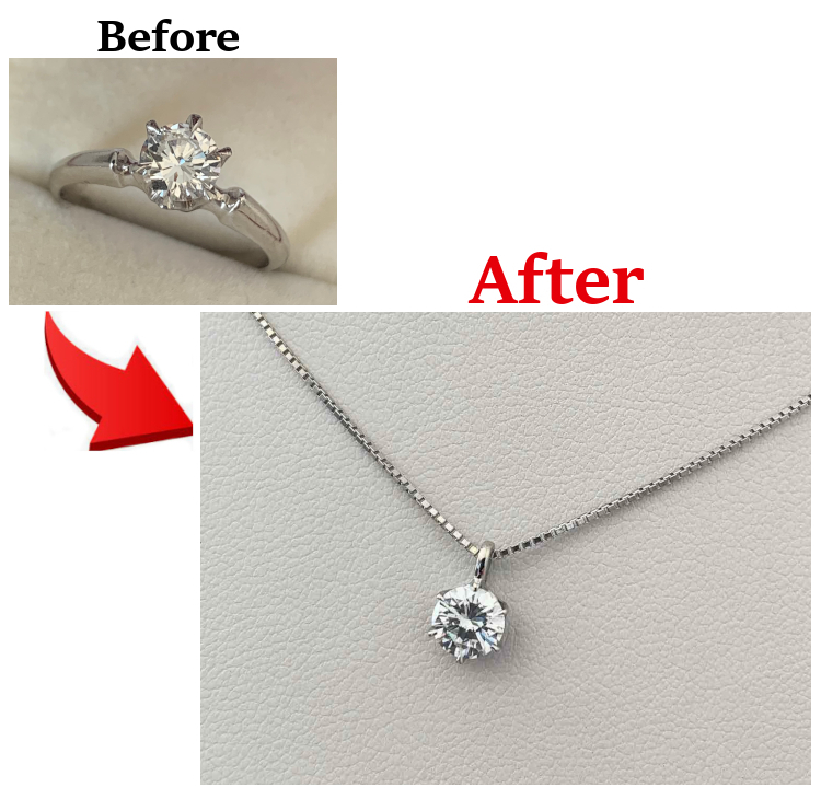 ジュエリーリフォーム事例 ダイヤモンドの指輪からネックレスへリフォ-ム - ジュエリー宝石専門店フルミヤ大阪・和歌山。