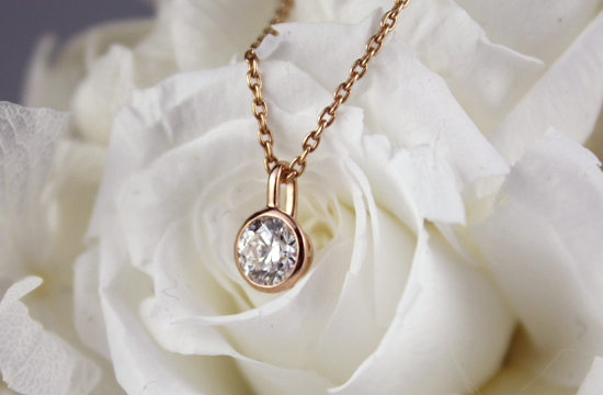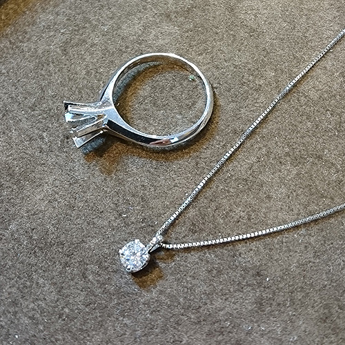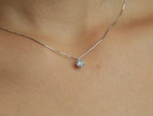 リングをネックレスにするリフォーム婚約指輪のダイヤモンドを普段使いにリメイクジュエリーリフォームの誠美堂。