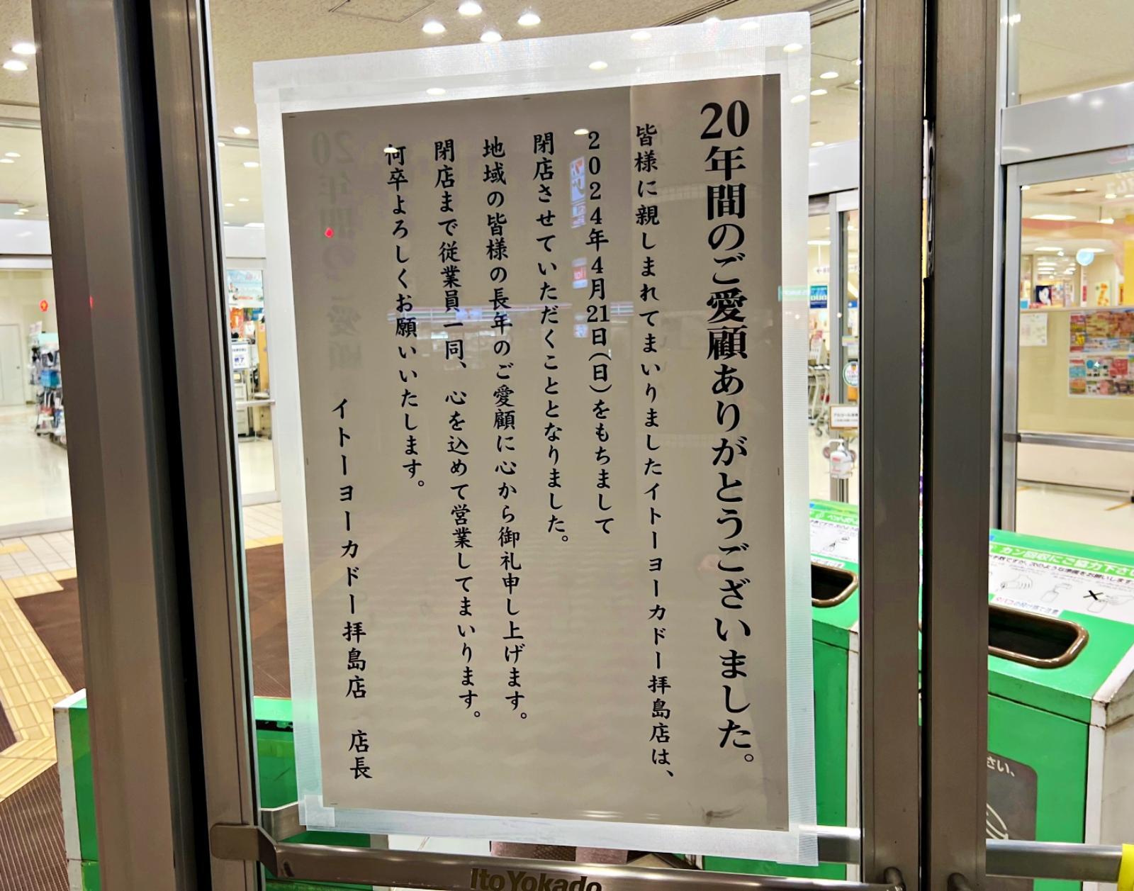 昭島市 イトーヨーカドー拝島店は2024年4月21日 日 19時25分をもって営業終了しました ヨッチ- エキスパート - Yahoo!ニュース。