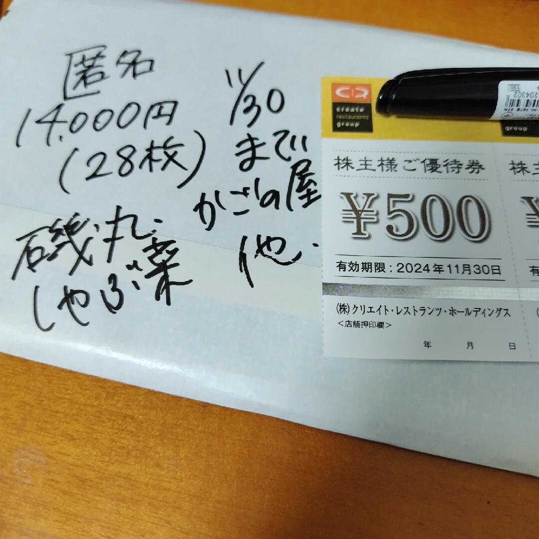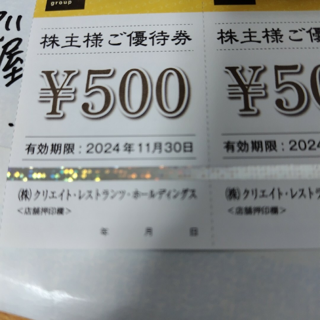 14000円 クリエイトレストランツ 株主優待券 匿名配送 割引券 クーポン。