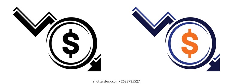 コスト削減アイコン。ドルダウンアイコンベクトルのイラスト素材・ベクター Image 121672627。