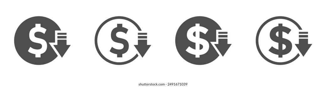 コスト削減アイコンイラスト。ドルダウンアイコンベクトル。のイラスト素材・ベクター Image 164279110。