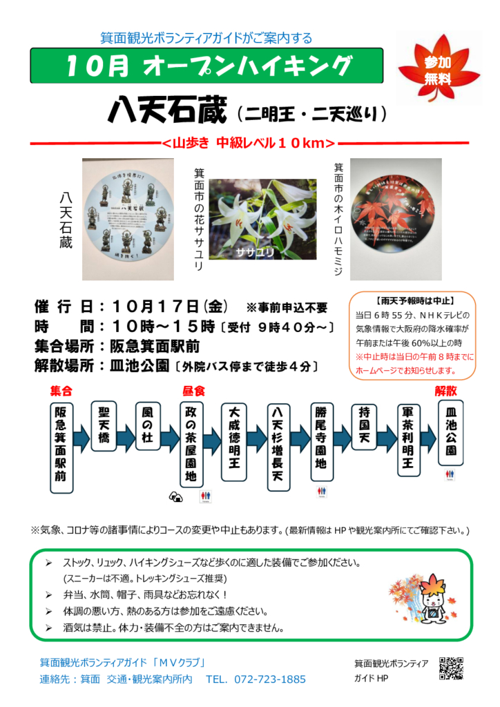 2025年11月9日 日オープンハイキング 箕面川ダムの紅葉 アカシデの森を散策 」のポスターを公開しました箕面観光ボランティアガイド。