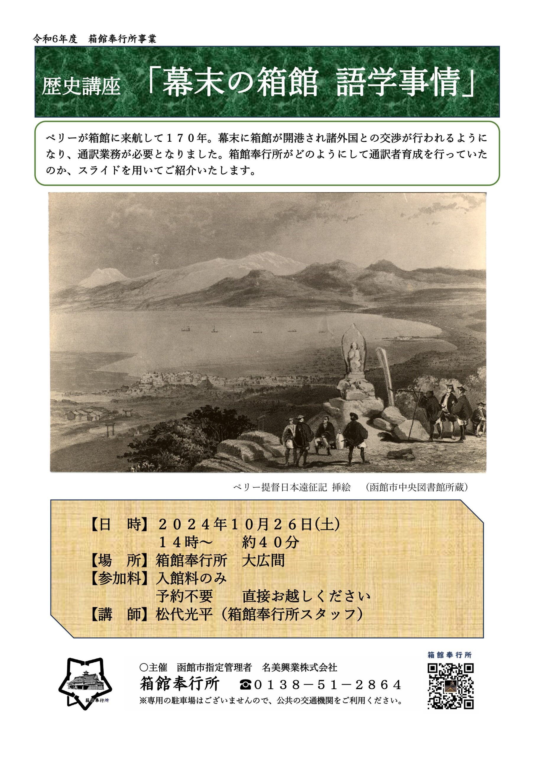 歴史講座「幕末の箱館 語学事情」開催のお知らせ。