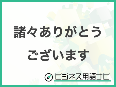 例文付き 「諸々ありがとうございます」の意味やビジネスでの使い方・言い換えまで紹介ビジネス用語ナビ。