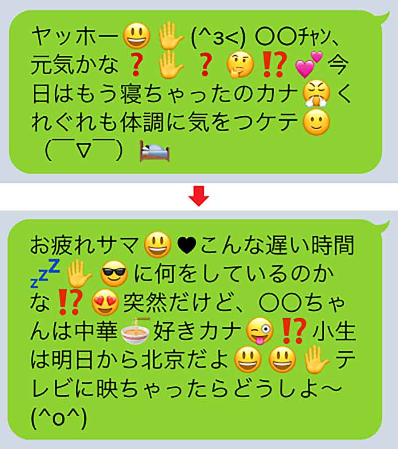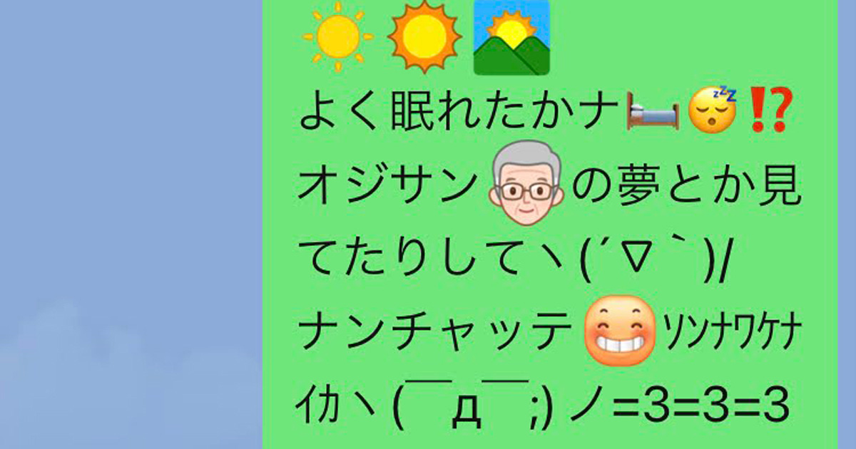 おじさんLINE と認定される6つの特徴! 長文、顔文字、独特な語尾などOggi.jp。