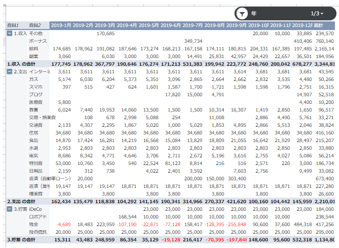 どっちがおすすめ?エクセル家計簿とスプレッドシート家計簿を徹底比較 ピボットテーブル編- ari-mamaの家計簿。