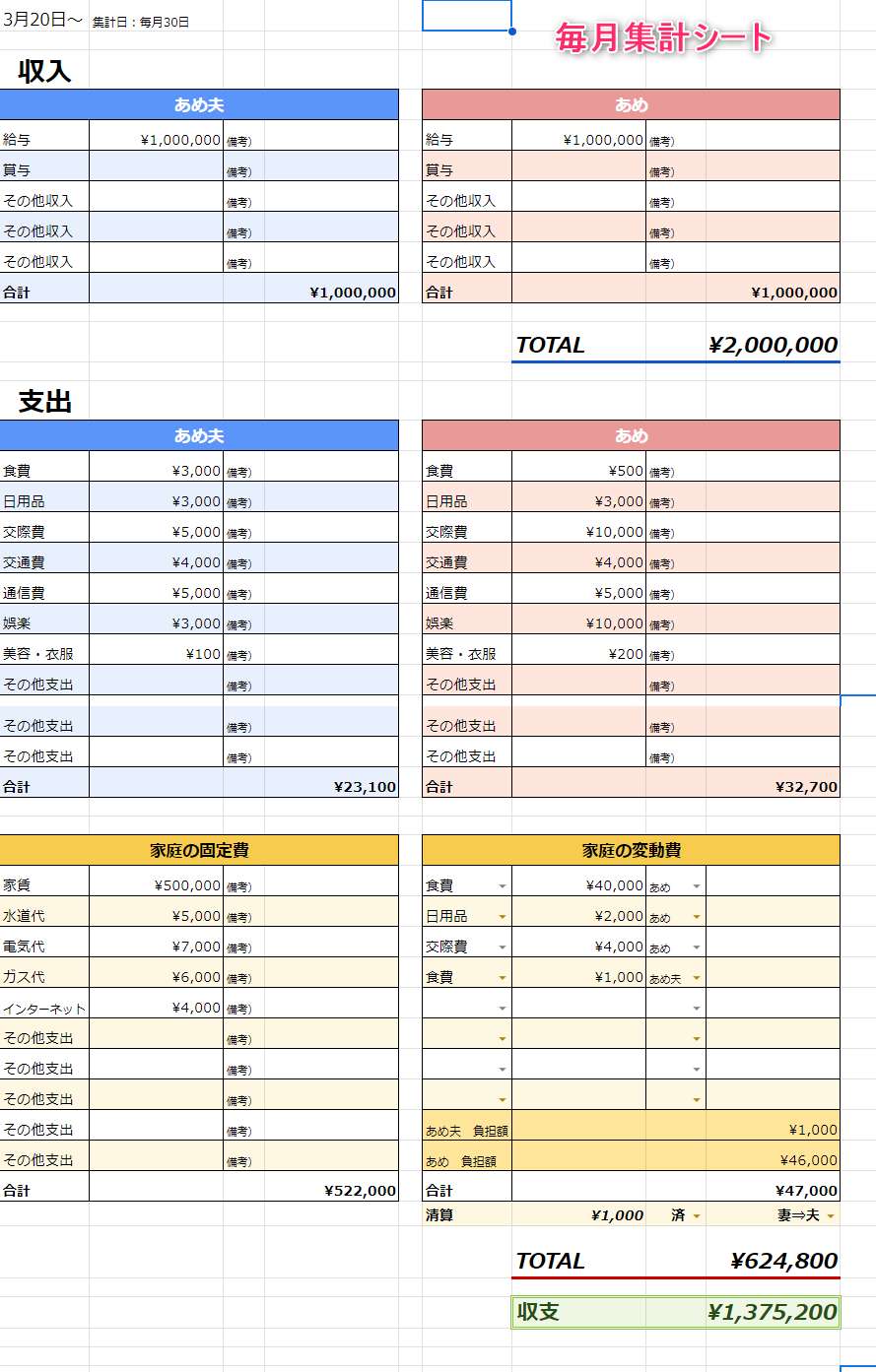 スプレッドシート家計簿を自作!家計管理がラクになるテンプレート ダウンロード可- 共働き夫婦のウェブログ。