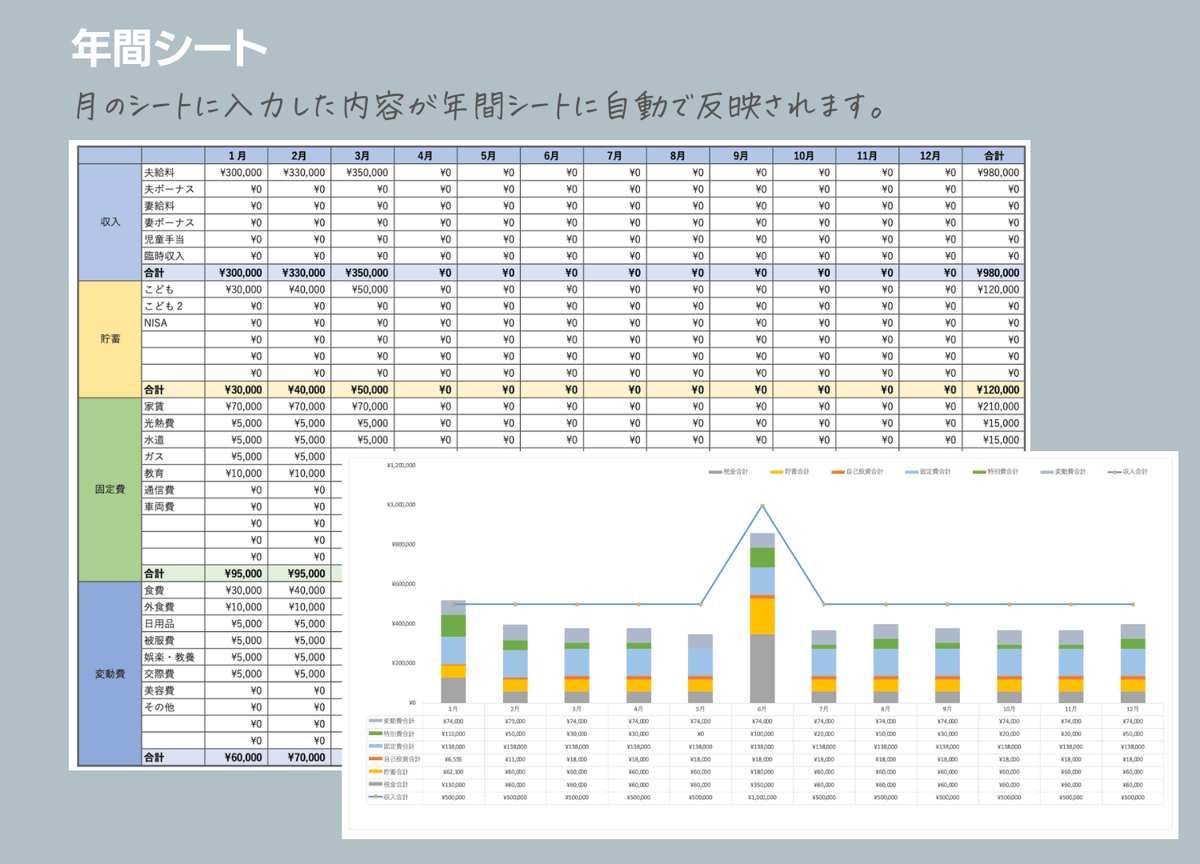無料テンプレートあり スプレッドシートで年間収支をシンプルに管理くうかんしんぷるライフ。